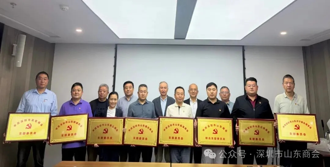 最后会议举行了2025年新成立党支部授牌仪式。此次共有9个新建党支部获得授牌,分别是:深圳市山东济宁商会理事会党支部、深圳市山东郓城商会党支部、深圳市山东章丘商会党支部、深圳市山东烟台商会党支部、深圳市山东日照商会党支部、深圳市高密商会党支部、深圳市山东威海商会党支部、深圳市山东商会联合党支部(联合单位:深圳市山东淄博商会、深圳市山东莱州商会、深圳市齐鲁书画院、深圳市蒙山沂水书画院)。新支部的成立,不仅是商会党委组织建设取得的重要成果,更是商会进一步扩大党组织覆盖面、持续增强党组织凝聚力与战斗力的关键举措。