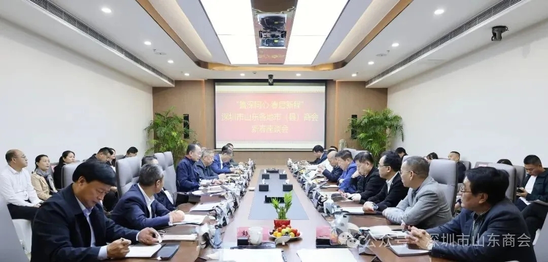 2025年12月27日,“鲁深同心,春启新程”深圳市山东十六地市、县区商会新春座谈会在深圳山东大厦顺利召开。深圳市济南商会、潍坊商会、德州商会等24家山东市、县区商会会长、秘书长齐聚一堂,共叙乡情、共商融合发展,会议由深圳市山东商会会长岳智飞主持。
