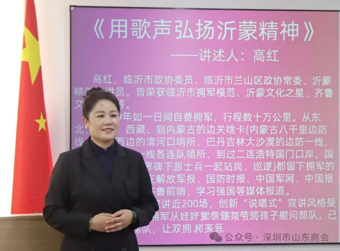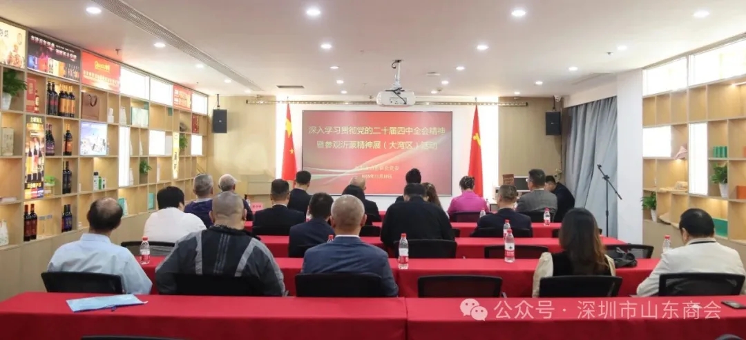 2025年11月18 日,深圳市山东商会党委联合临沂市驻粤流动党员党委共同开展深入学习贯彻党的二十届四中全会精神暨参观沂蒙精神展(大湾区)主题活动。通过理论解读、红色研学、艺术熏陶相结合的方式,推动党的创新理论落地生根,助力红色基因代代相传。活动中,深圳市山东商会党委副书记、会长王立新同志出席并专题解读党的二十届四中全会精神,临沂市驻粤流动党员党委书记、市政府驻广东联络处主任赵雷同志致欢迎辞,中央音乐学院高红教授受邀讲授红色艺术党课,山东商会党委8个支部,30余名党员代表共同参与此次党性教育实践。
