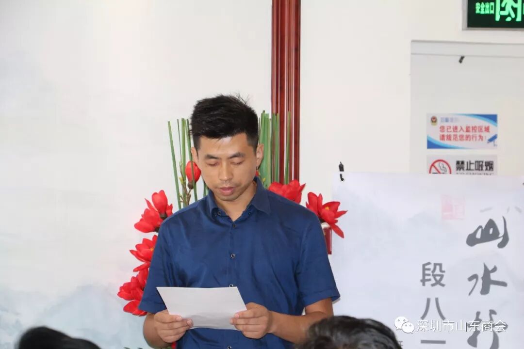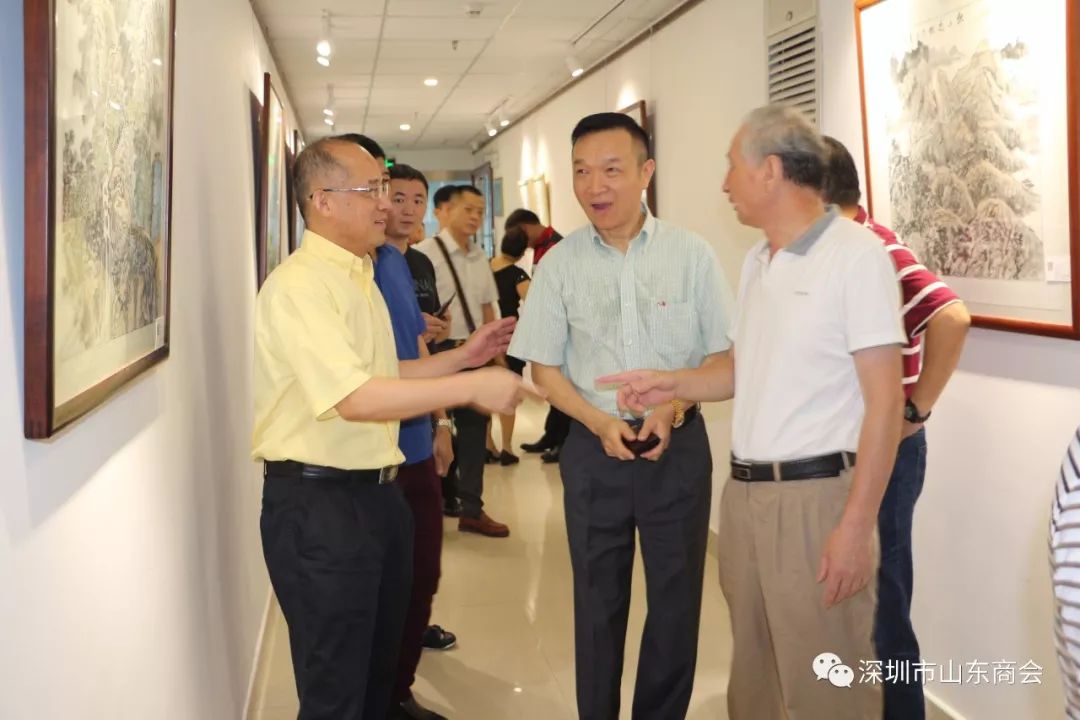 我会会长王立新在展览开幕式上代表商会对“山水抒怀——段八一水墨邀请展”顺利开幕致以热烈的祝贺,并表示商会将继续关注和支持由中国国画院岭南分院、深圳市齐鲁书画院和深圳市瀚墨重彩画研究院举办的各类文化艺术活动,努力将书画院打造成商会的靓丽名片。