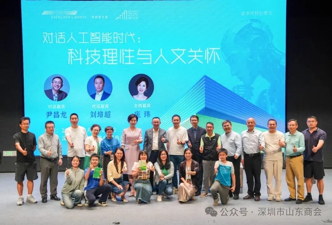 金秋鹏城,书香满城。2025年11月8日,在一年一度的深圳“读书月”之际,深圳市图书馆特别邀请著名人文学者(山大知名校友尹昌龙)与科技龙头企业掌门人(山东商会副会长、越疆科技创始人、董事长兼CEO刘培超)走进深圳图书馆,为大家展开面向未来的人文对话。我会会长王立新带队参加了此次分享会。