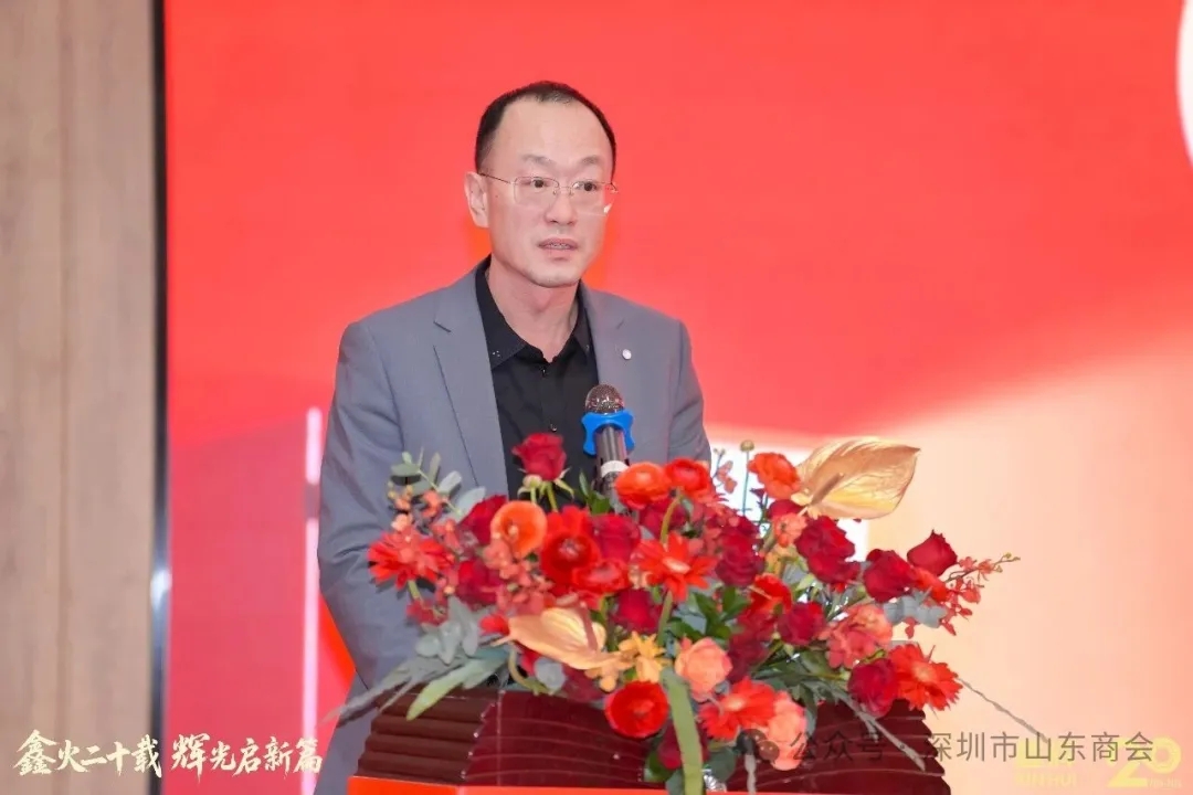 庆典仪式上,我会会长岳智飞代表商会发表热情洋溢的致辞。他首先向鑫辉餐饮二十周年华诞致以最热烈的祝贺,向王传启执行会长及全体鑫辉人致以崇高的敬意。岳智飞会长表示,鑫辉餐饮的二十年,是扎根实业、坚守初心的二十年,更是锐意进取、不断超越的二十年。作为商会的执行会长单位,鑫辉餐饮始终积极参与商会建设,主动践行社会责任,充分展现了鲁商“诚信经营、敢闯敢干、回报社会”的优良传统,为商会会员企业树立了榜样。他指出,商会与会员企业本是命运与共的共同体,此次庆典不仅是鑫辉餐饮发展史上的重要里程碑,更是商会凝聚乡情、赋能企业发展的生动体现。商会将继续发挥桥梁纽带作用,汇聚资源、搭建平台,全力支持会员企业做大做强,与广大在深鲁商携手并肩,共同推动粤鲁两地经济文化交流与发展。