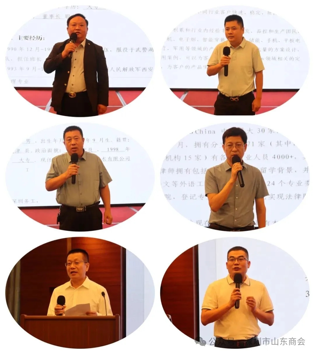 经会议研究表决,一致通过了深圳市鑫旺虹科技有限公司董事长王占贵、中保国威保安服务有限公司董事长李正文、深圳爱华国际教育科技集团董事长张庆阔成为执行会长单位的申请(姓氏笔画为序);深圳市大强能源技术有限公司总经理王大强、广东华商律师事务所高级合伙人王庆社、深圳市先锋电力有限公司董事长王宣民、深圳光远智能装备股份有限公司董事长朱光、深圳壹卡科技有限公司总经理杜江涛、深圳市三木服饰有限公司董事长李兆显、深圳市银舍智能科技有限公司董事长李建海、深圳市同悦鑫科技有限公司董事长谷立柱、青建集团股份公司华南区域公司总经理宋钢、深圳问止中医健康科技有限公司总经理崔祥瑞、深圳市顺景咨询有限公司总经理董业英成为副会长单位的申请(姓氏笔画为序),同意提交理事会和会员大会表决。会场响起热烈的掌声向他们表示祝贺。