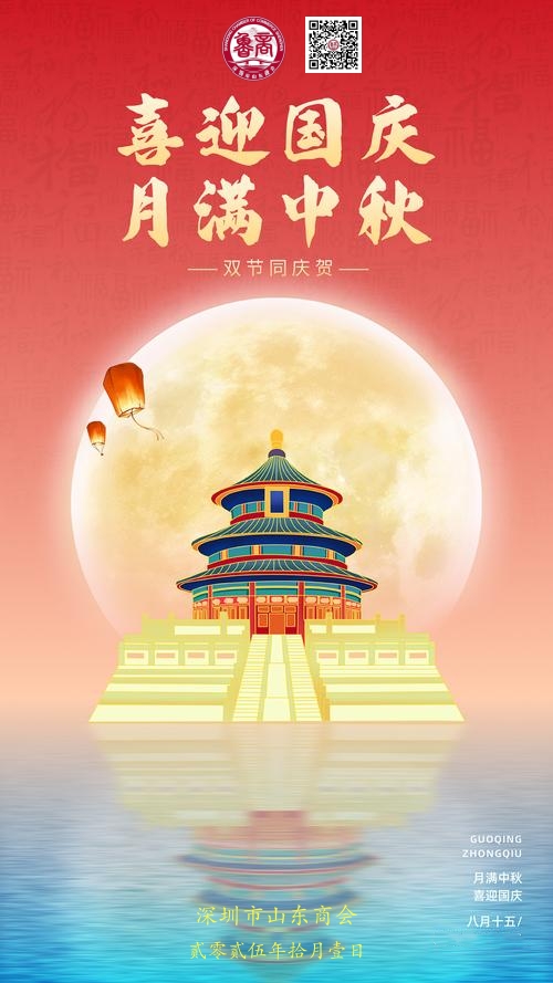 【节日祝福】喜迎国庆 欢度中秋—深圳市山东商会恭祝您节日愉快,身体安康、阖家幸福! 2025/10/1 来源: 作者: szssdsh 上一个: 【商会要闻】深圳市山东商会三届七次理事会成功召开 下一个: 【商会要闻】深圳市山东商会三届十一次会长办公会成功召开